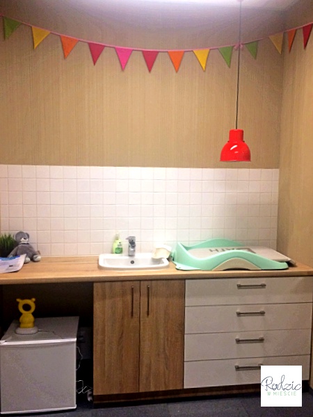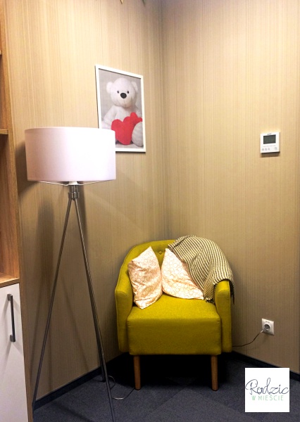 W nowej, a właściwie odnowionej siedzibie Campus Warsaw nie ma kącika dla dzieci, ale jest bardzo przyjemny i dobrze wyposażony pokój dla rodzica z dzieckiem, z którego można swobodnie korzystać. Znajdziemy w nim przewijak, fotel do karmienia, lodówkę i całe wyposażenie niezbędnych dla niemowlaka akcesoriów – pieluchy, mokre chusteczki, kosmetyki. Pokój znajduje się na I piętrze, oczywiście z dojazdem windą.