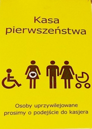 Coraz więcej sklepów i restauracji jasno komunikuje, na drzwiach i przy kasach, że kobiety w ciąży mają pierwszeństwo obsługi i dają prostą instrukcję, co zrobić – podejść do kasjera, omijając kolejkę. W większych sklepach są to specjalne kasy pierwszeństwa, w mniejszych podchodzi się bez kolejki do zwykłej kasy. Taki komunikat nie tylko daje kobiecie pewność, że nie będzie musiała czekać w kolejce, ale też pokazuje pozostałym klientom, że ciężarne są tutaj uprzywilejowane i że jest to norma. Warto szukać takich sklepów i korzystać z ich usług. Takie oznakowanie miejsc wspiera fajna inicjatywa o nazwie Kolejkowa Rewolucja, która udostępnia gotowe do wydruku oznaczenia.
