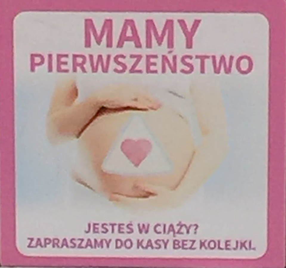 Oczywiście, problem istnieje. Niedawno w internecie głośnym echem odbił się amatorski film pokazujący kobietę w zaawansowanej ciąży, której nikt nie ustąpił miejsca w kolejce. Nie będę przytaczała tutaj własnej perspektywy, bo doświadczenia każdej z nas są inne – jedne nie mają problemu z przepuszczeniem w kolejce, miejscem w autobusie czy innymi formami pomocy. A inne mają. Chciałabym Wam pokazać zarówno udane, jak i nieudolne próby pokazania innym, że kobieta w ciąży ma specjalne potrzeby, mimo powszechnemu i znanemu każdemu powiedzeniu „ciąża nie choroba”.