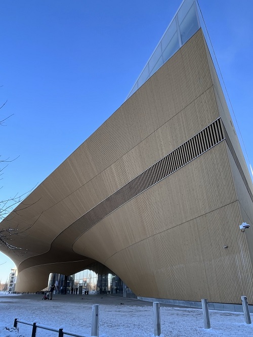 Na początku roku relacjonowałam naszą podróż do Helsinek na moim Instagramie i tam pokazywałam bibliotekę Oodi. To jest najnowsza biblioteka, piękny drewniany budynek, w fińskim, giętym drewnie — oni tam szaleją na punkcie swojego dizajnu. To jest biblioteka stosunkowo nowa, bo powstała zaraz przed pandemią, chyba w grudniu 2018 roku została otwarta. I to jest z nazwy biblioteka, ale tak naprawdę to jest miejsce kultury. Ja ją zawsze podaję jako przykład tego, jak Finowie podchodzą do przestrzeni publicznej.