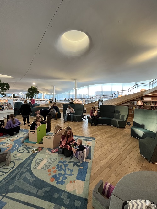 Jak my tam byliśmy, to zaproszono nas na darmowe gordonki, bo tam się odbywają też różne zajęcia dla rodziców i dla dzieci. Tak że to też pokazuje atmosferę, jaka tam panuje. To jest biblioteka, ale ona jest jednak dla mieszkańców i to się da odczuć. I w tej atmosferze, i w tym, jak ona funkcjonuje — tam wszystko jest dla ludzi jeżeli chodzi o tę strefę publiczną.