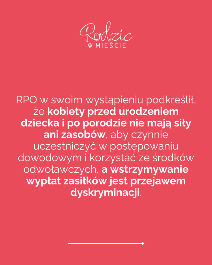 RPO podkreślił w swoim wystąpieniu, że kobiety przed urodzeniem dziecka i po porodzie nie mają siły ani zasobów, aby czynnie uczestniczyć w postępowaniu dowodowym i korzystać ze środków odwoławczych, a wstrzymywanie wypłat zasiłków jest przejawem dyskryminacji. Czekamy na odpowiedź ZUS-u i odniesienie się do wystąpienia Rzecznika.