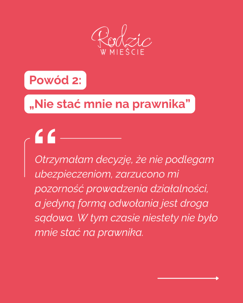 Niestety, to historia jakich wiele. Historia rodziny, która nie może skorzystać z przysługujących jej świadczeń. Mamy, która zamiast zaangażować się w opiekę nad dzieckiem, musi załatwiać kolejne urzędowe sprawy z ZUS-em. Zamiast korzystać z urlopu macierzyńskiego, wymyśla sposoby na znalezienie dodatkowego zarobku. I taty, na którego barki, przynajmniej w pierwszych miesiącach życia dziecka, spada pełna odpowiedzialność za finanse rodziny.